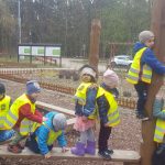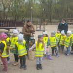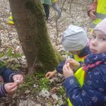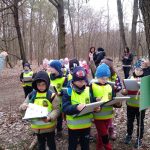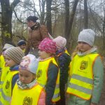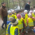 Dnia 25 kwietnia dzieci z grupy Elfów i Krasnali pojechały do Szkoły Leśnej na Barbarce. Na miejscu uczestniczyły w zajęciach edukacyjnych pt. ,,Wiosna w lesie”. W trakcie zajęć Krasnale obejrzały prezentację multimedialną ,,Wiosenne rewolucje” poświęconą pierwszym oznakom wiosny pojawiających się w świecie roślin i zwierząt. Podczas spaceru po lesie poznawały wygląd i nazwy wiosennych roślin. Elfy w trakcie podchodów wypełniały indywidualne karty dotyczące etapów rozwoju żaby, napotkanych ptaków i roślin, a w salce edukacyjnej wyklejały plasteliną szablon motyla z zachowaniem zasad symetrii.