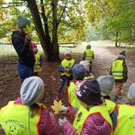 uczestniczyły w zajęciach edukacyjnych. Poznały nazwy rosnących tam drzew, zaobserwowały jakie