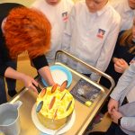 Dziś 23.02.2023 r. w klasie 4b świętowaliśmy 550 urodziny Mikołaja Kopernika. Był pyszny tort,