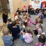 W piątek 20 października 2023 r. grupę Krasnale odwiedziła klasa IIb. Uczniowie przeczytali przedszkolakom bajkę „Trzy małe świnki”. Mieli okazję poćwiczyć umiejętność czytania oraz podzielić się nią z młodszymi kolegami i koleżankami. Następnie wszyscy wysłuchali uwielbianego przez przedszkolaki opowiadania „Pazurzak”. Dziękujemy za odwiedziny i zapraszamy ponownie!