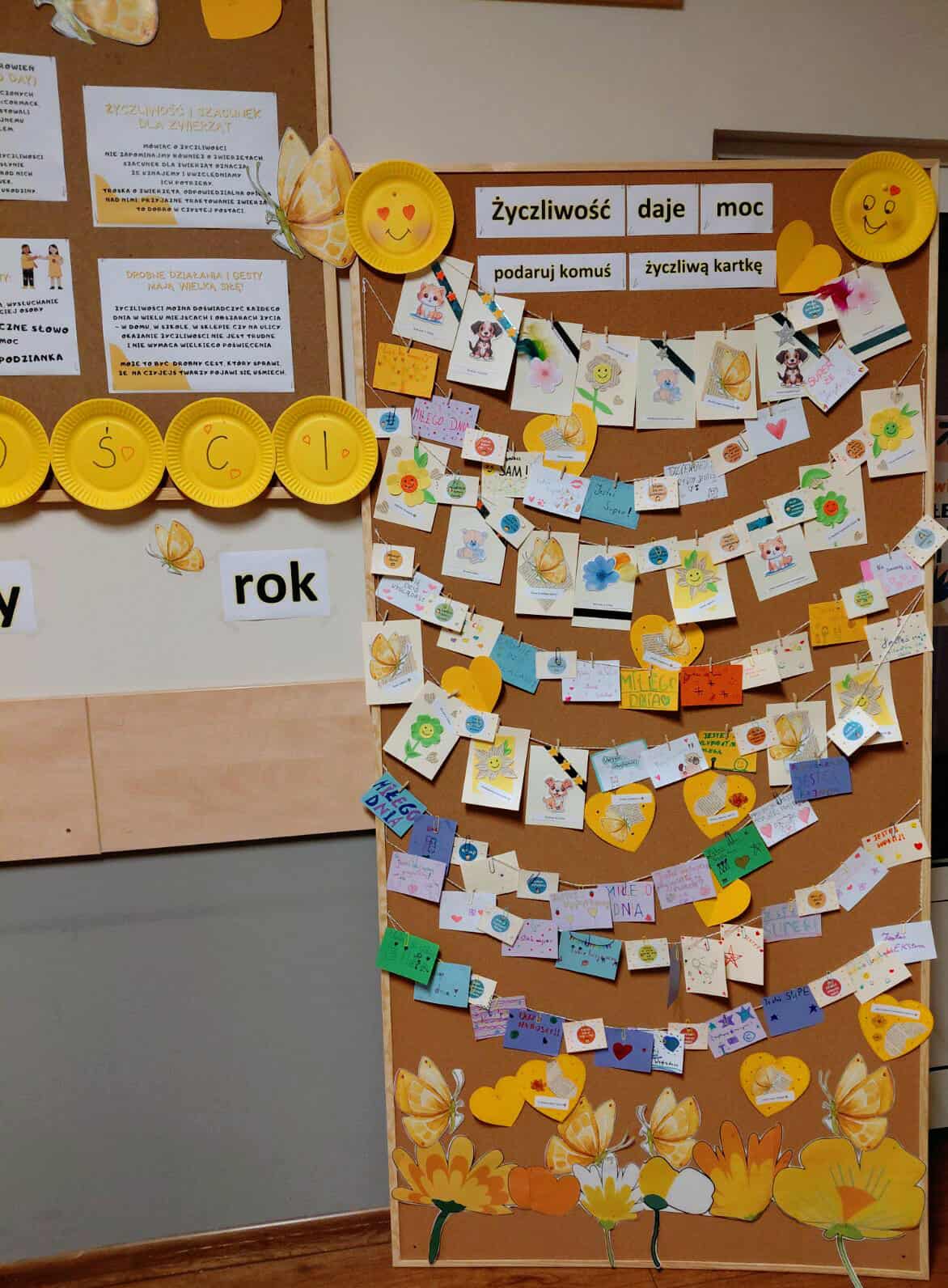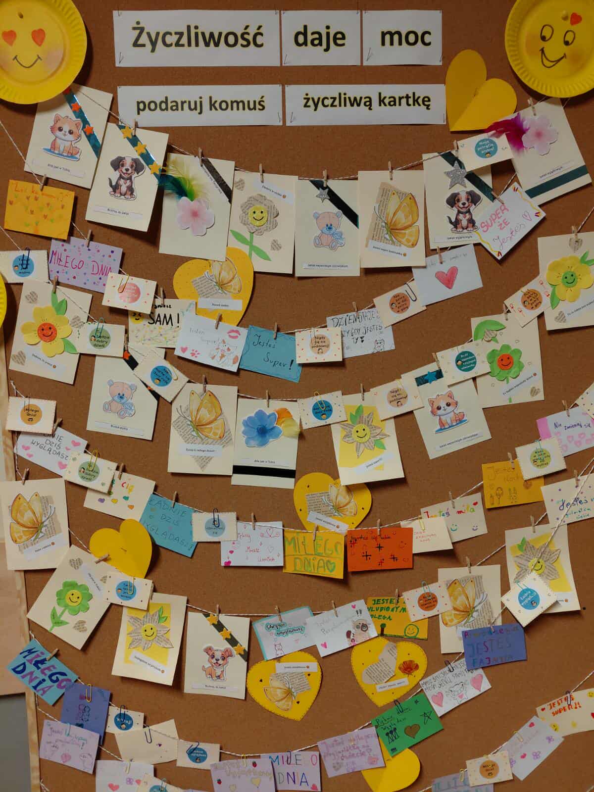 ✂️💌 Z okazji Dnia Życzliwości nasi uczniowie przygotowali wyjątkowe karteczki z miłymi słowami i życzeniami, które czekały na szkolnych korytarzach 🏫💖