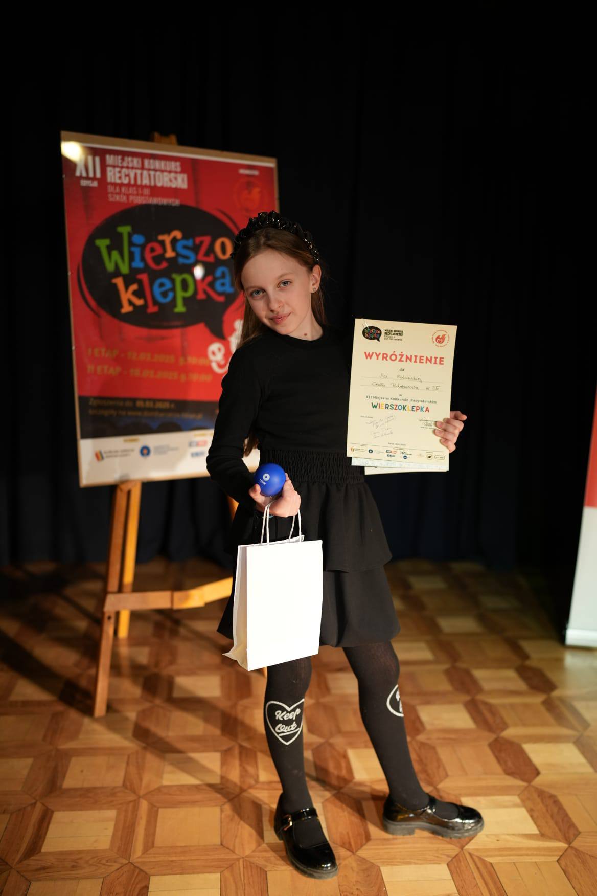W finale konkursu Wierszoklepka wzięło udział 42 uczniów z różnych szkół podstawowych. Uczennica naszej szkoły, Maja Gościńska, otrzymała wyróżnienie za recytację wiersza J. Papuzińskiej Czarna