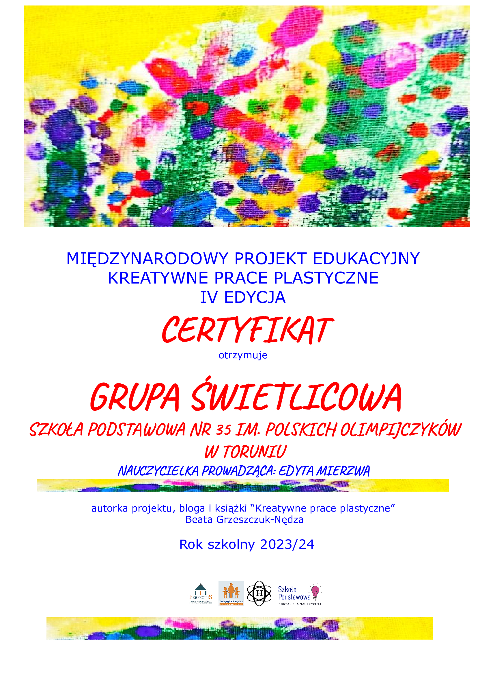 Certyfikat za udział w projekcie edukacyjnym „Kreatywne Prace Plastyczne”