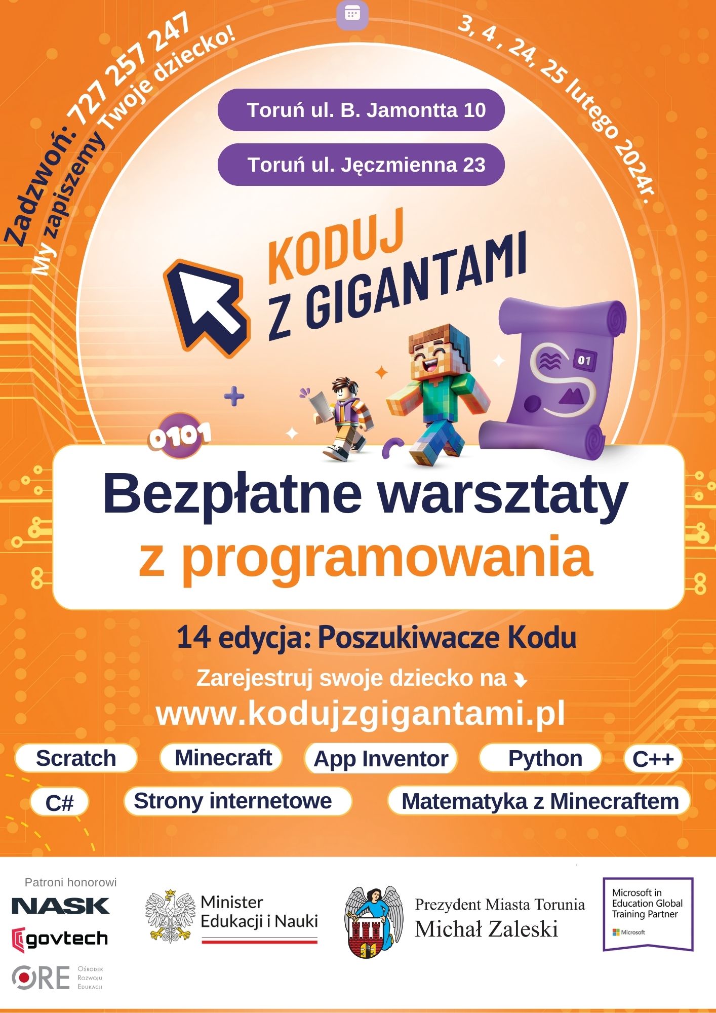 Szanowni Państwo jest nam niezmiernie miło poinformować, że zapisy na darmowe warsztaty z programowania dla uczniów Koduj z Gigantami właśnie ruszyły. To 14. już edycja