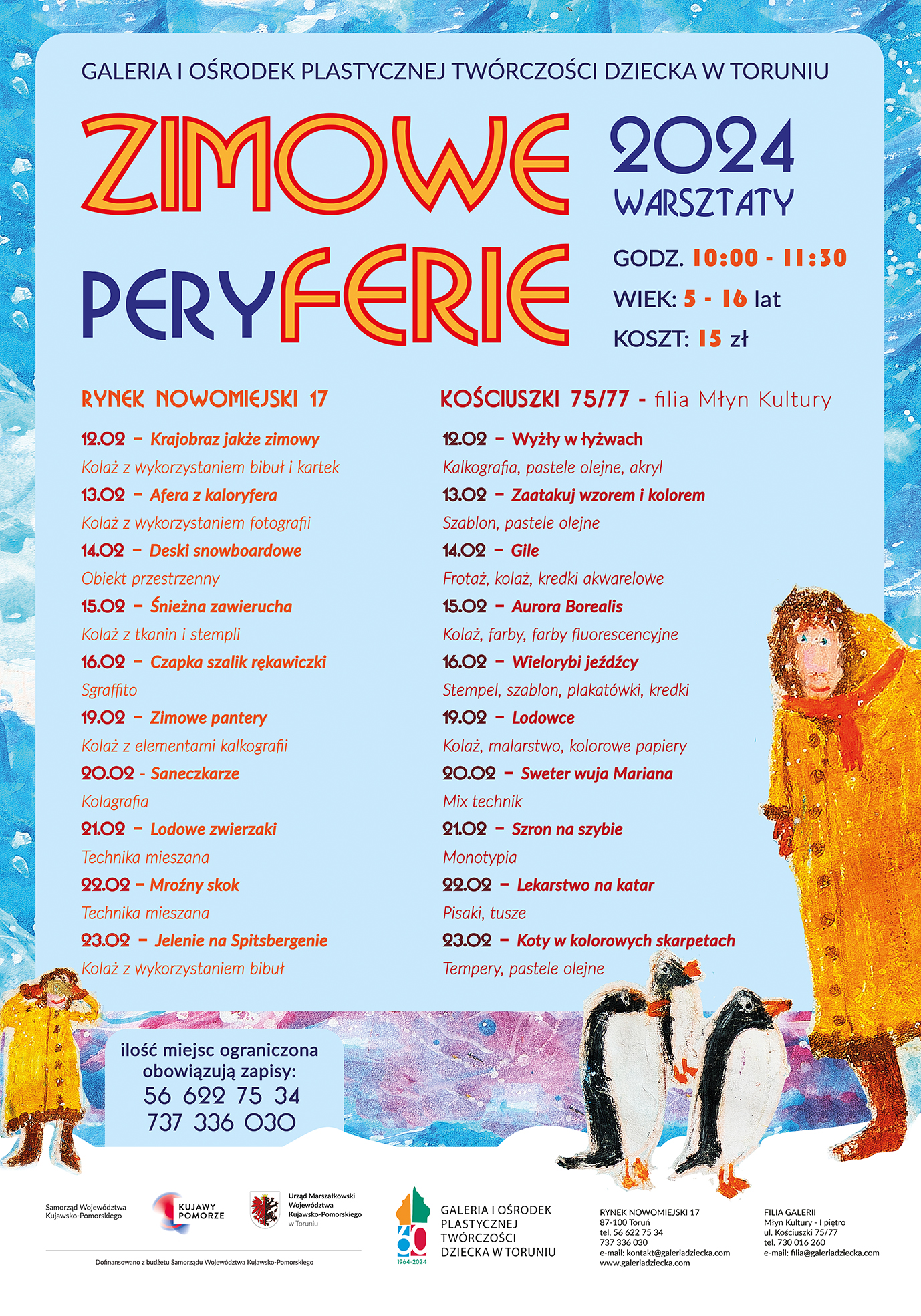 Galeria i Ośrodek Plastycznej Twórczości Dziecka zapraszają na zimowe ferie z techniką. Szczegóły w załączniku.