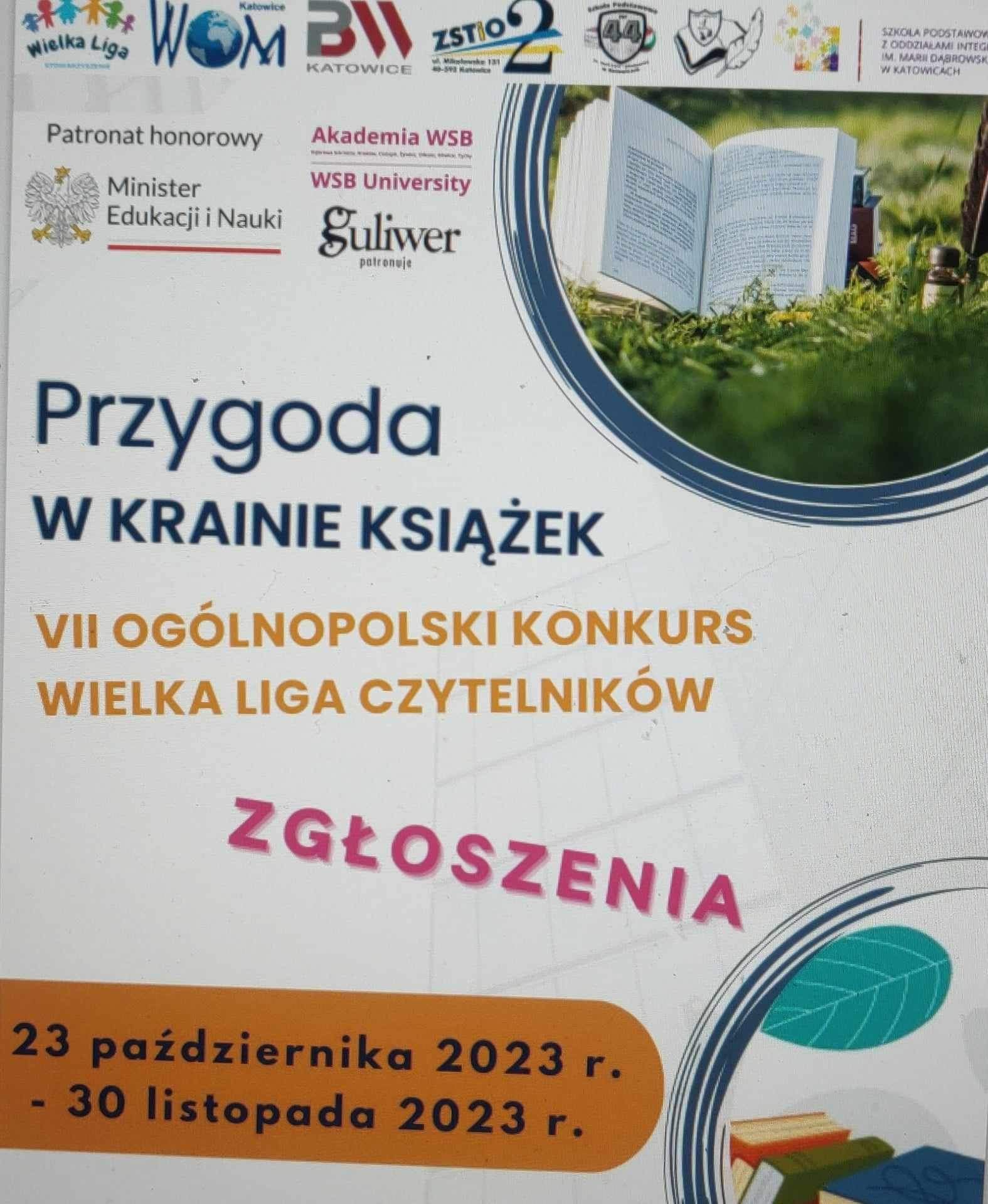 WIELKA LIGA CZYTELNIKÓW Drodzy uczniowie i sympatycy naszej szkoły! Ruszyła VII edycja ogólnopolskiego konkursu WIELKA LIGA CZYTELNIKÓW. Nauczycielki bibliotekarki z naszej szkoły pełnią rolę koordynatorek