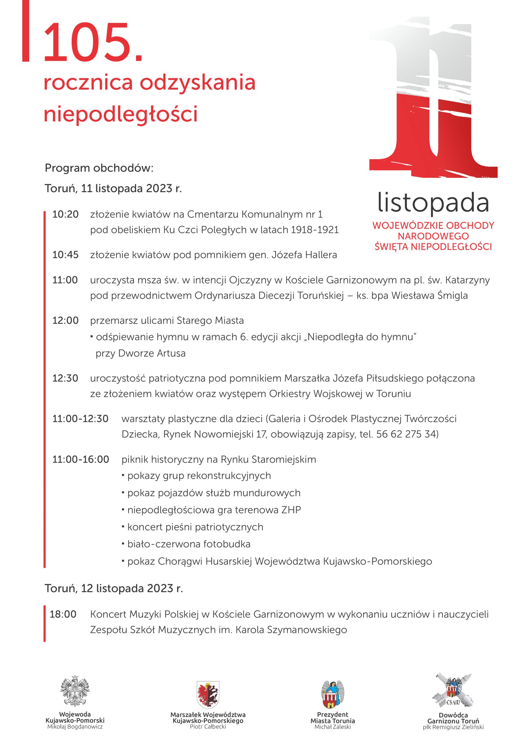 11 listopada 2023 Wojewódzkie Obchody Narodowego Święta Niepodległości.