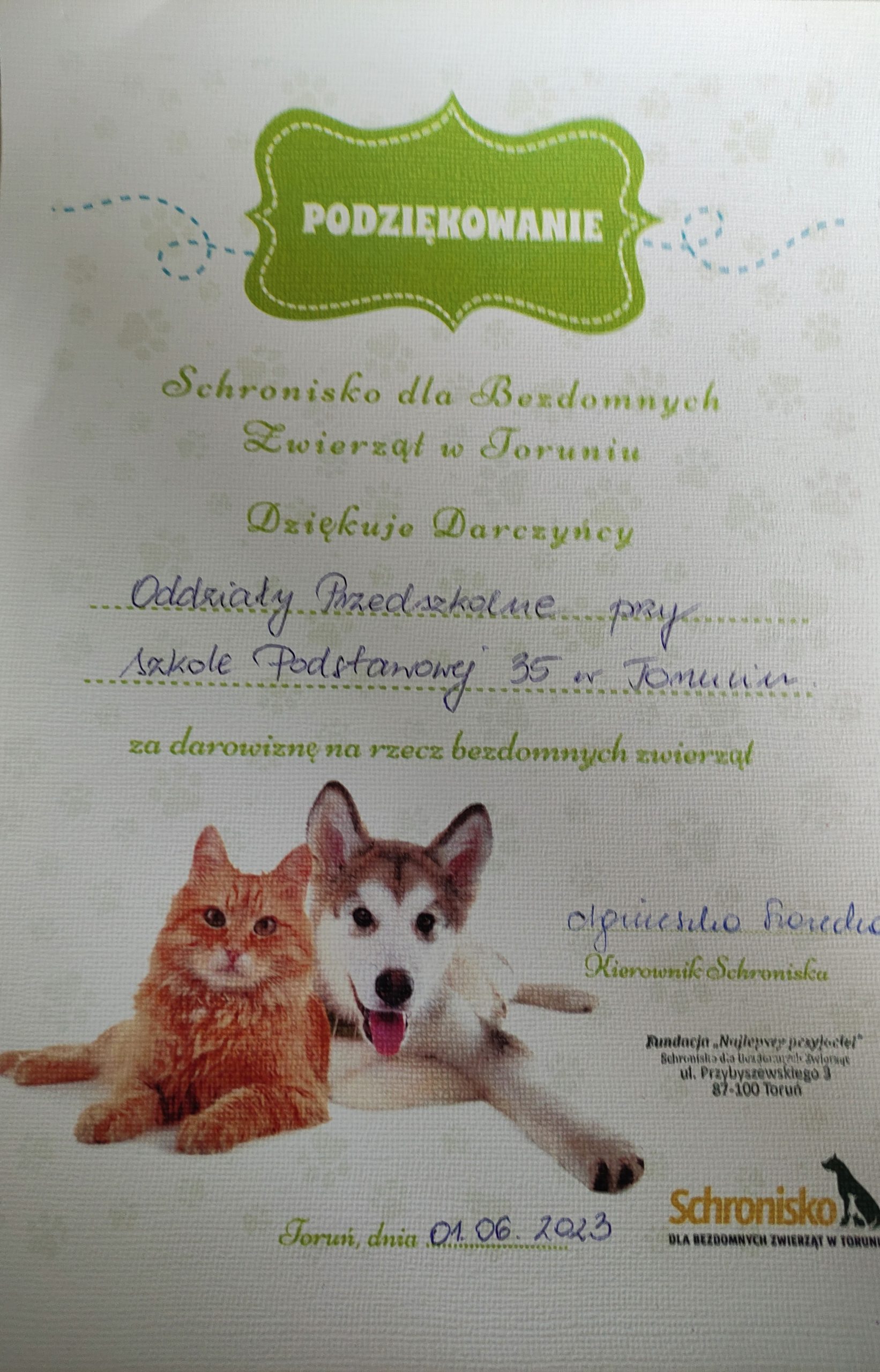 Dziękujemy bardzo wszystkim zaangażowanym w akcję pomocową dla Schroniska dla bezdomnych zwierząt w Toruniu.