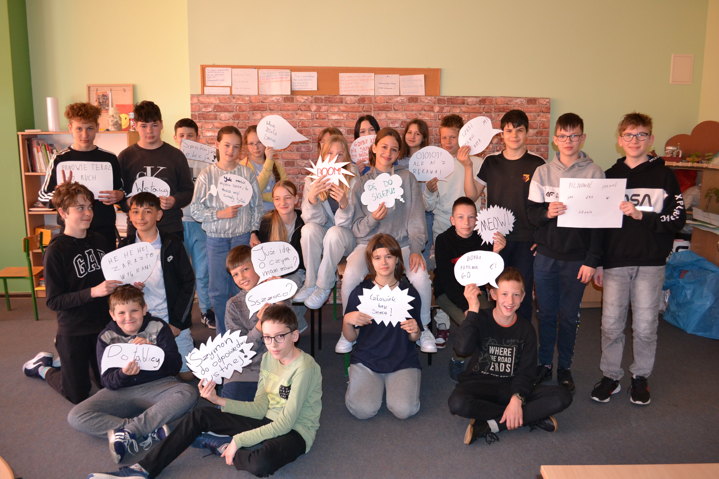 Klasa 6b podczas zajęć „Frazeologiczno – komiksowy świat” zmierzyła się z zawiłościami polszczyzny – związkami frazeologicznymi. Uczniowie wiedzą przecież, że nie zawsze słowa wskazują dosłownie