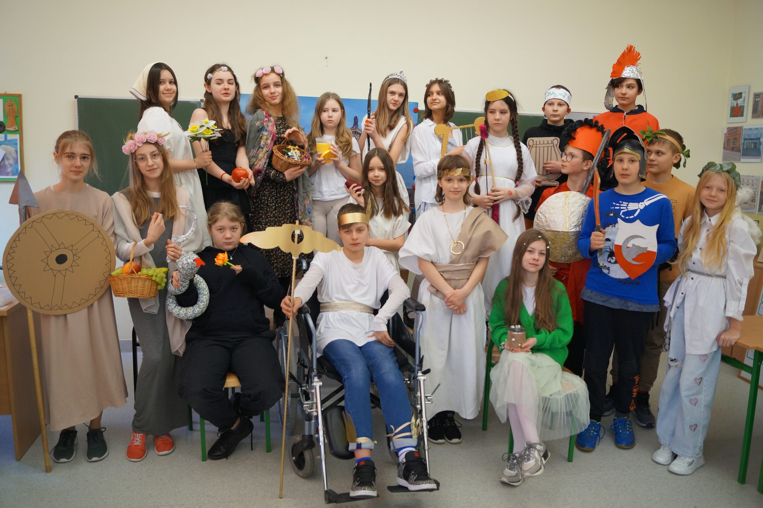 Cykl lekcji dotyczących mitologii greckiej w klasach piątych zakończył się ucztą bogów na Olimpie.
