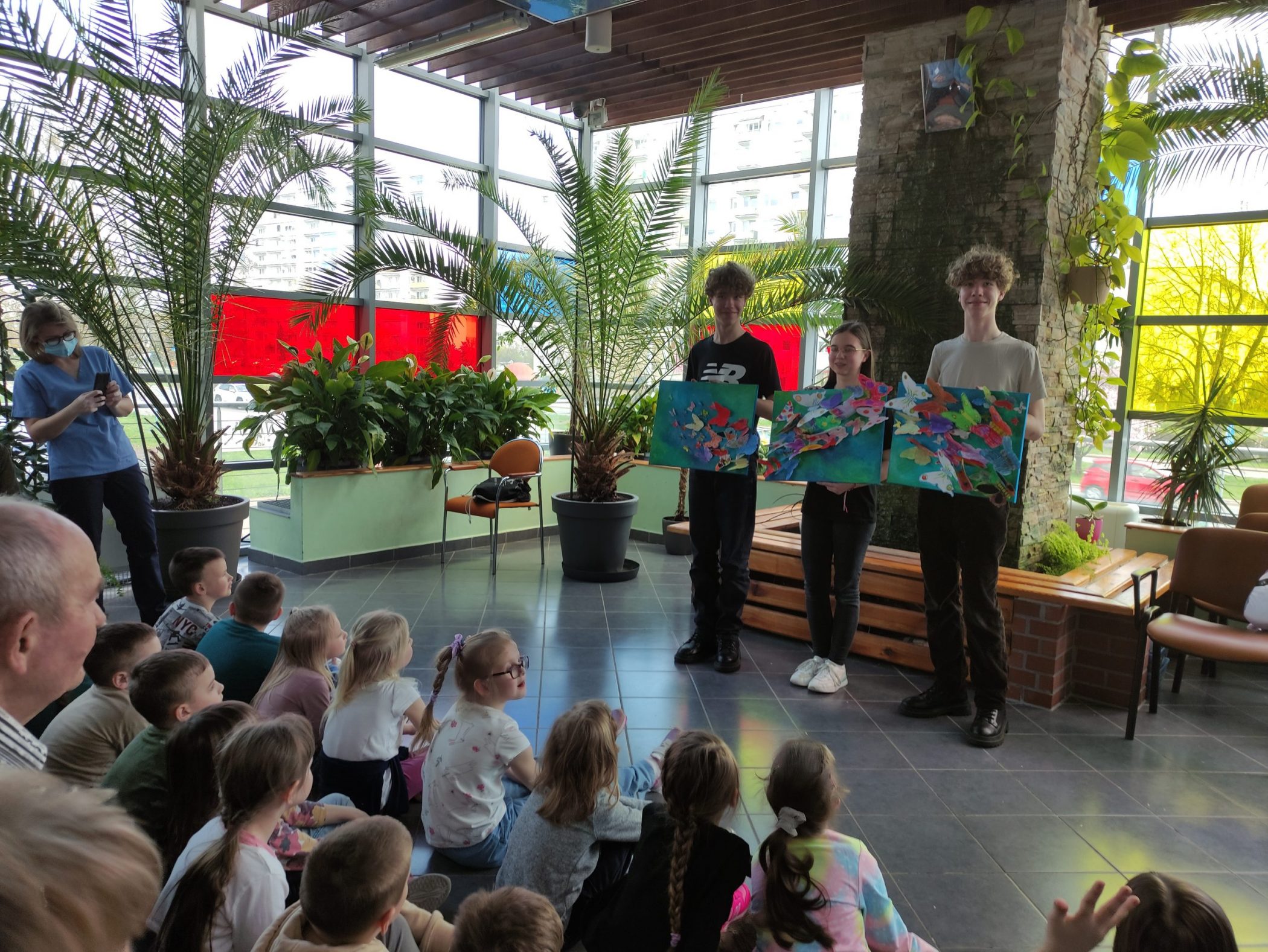 20.04.23 dzieci z grupy Elfy i uczniowie ze szkolnego klubu wolontariusza z opiekunem p. Karoliną z Pachnowską uczestniczyły w spotkaniu z seniorami z dziennego oddziału ZPO.