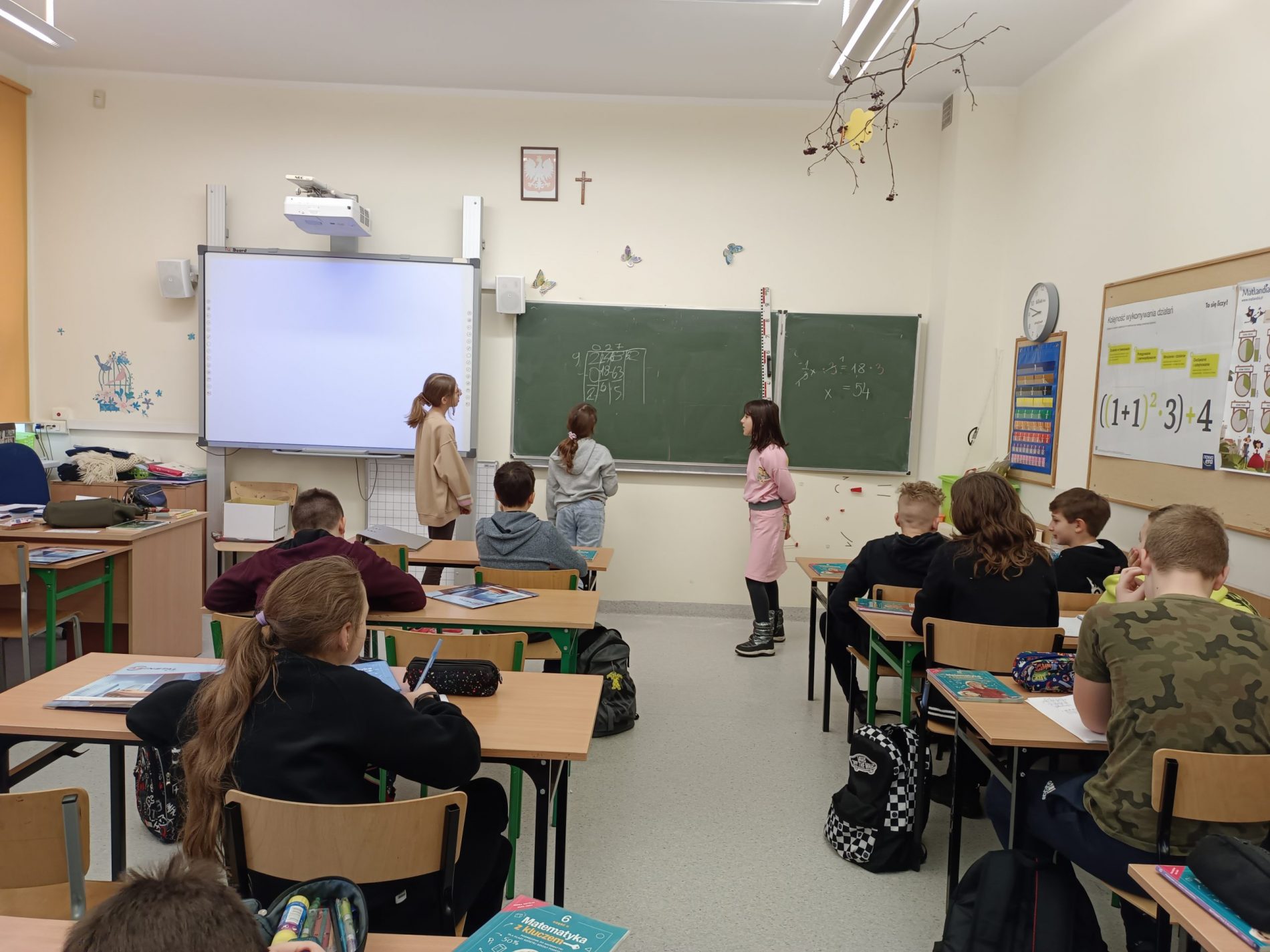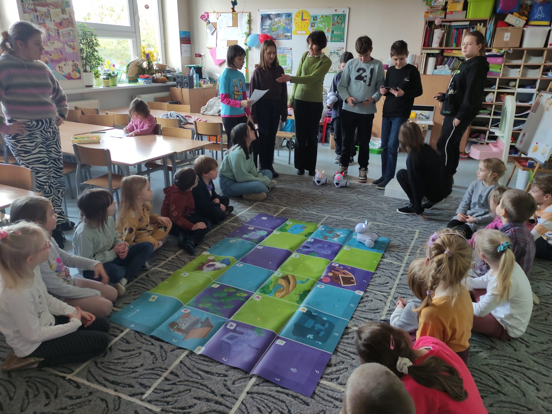 Dzisiaj spotkała nas niezwykła niespodzianka. Odwiedziły nas Fotony…Dzięki uprzejmości dzieci z kółka matematycznego i ich opiekuna p. Eli Kwiecińskiej mieliśmy okazję uczestniczyć w grze przygotowanej