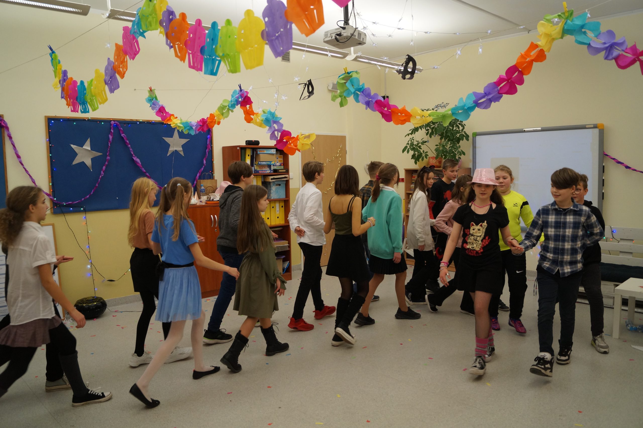 Uczniowie klasy 5b w piątek, 20.01.2023 r., z przytupem zakończyli I półrocze. Po wytężonej pracy i obowiązkach przyszedł czas na relaks i wspaniałą klasową imprezę