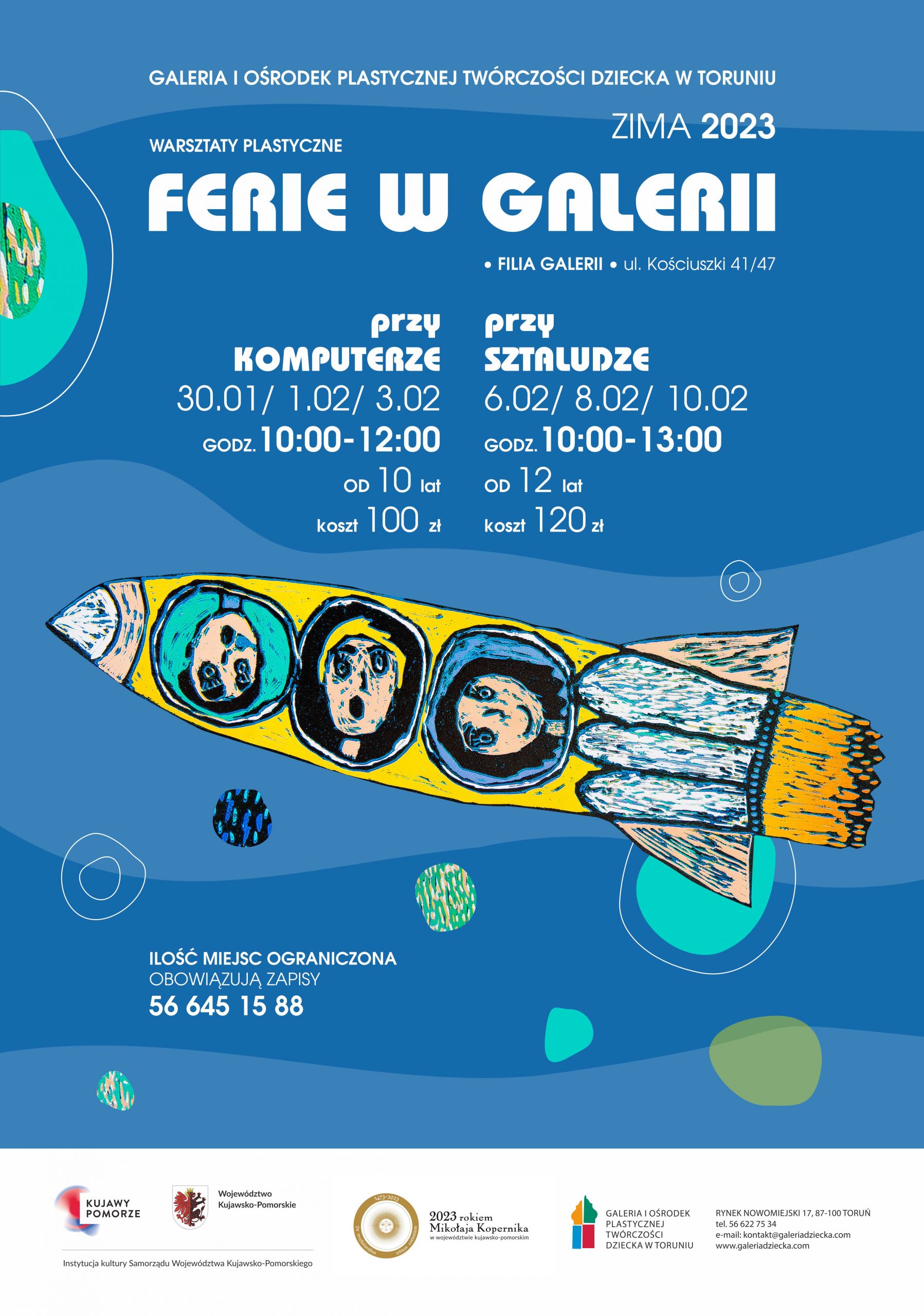 FERIE ZIMOWE 2023 FILIA GALERII przy ul. Kościuszki 41/47 WARSZTATY PRZY KOMPUTERZE 30.01/ 1.02/ 3.02 ALE KOSMOS! Na dzieci w wieku powyżej 10 roku życia